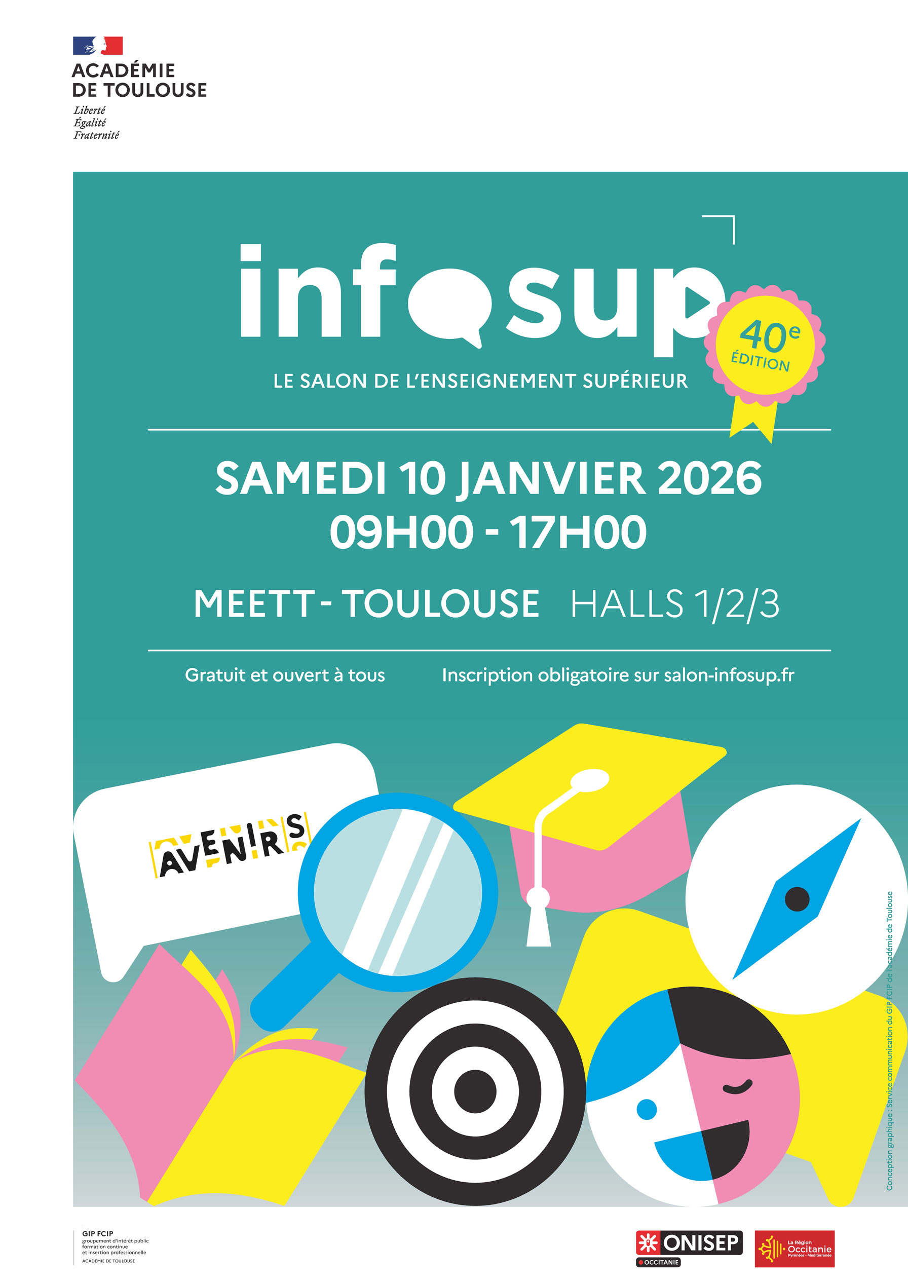 Préparez votre orientation et renseignez-vous sur les différentes formations grâce au salon Infosup 2026 ! Le salon de l'enseignement supérieur se déroulera au MEETT de Toulouse les 8, 9 et 10 janvier 2026.